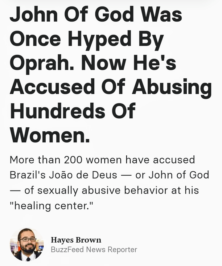 Abusive and vile men whom she has either glorified through her television show or can be seen photographed with. Harvey Weinstein and John of God.